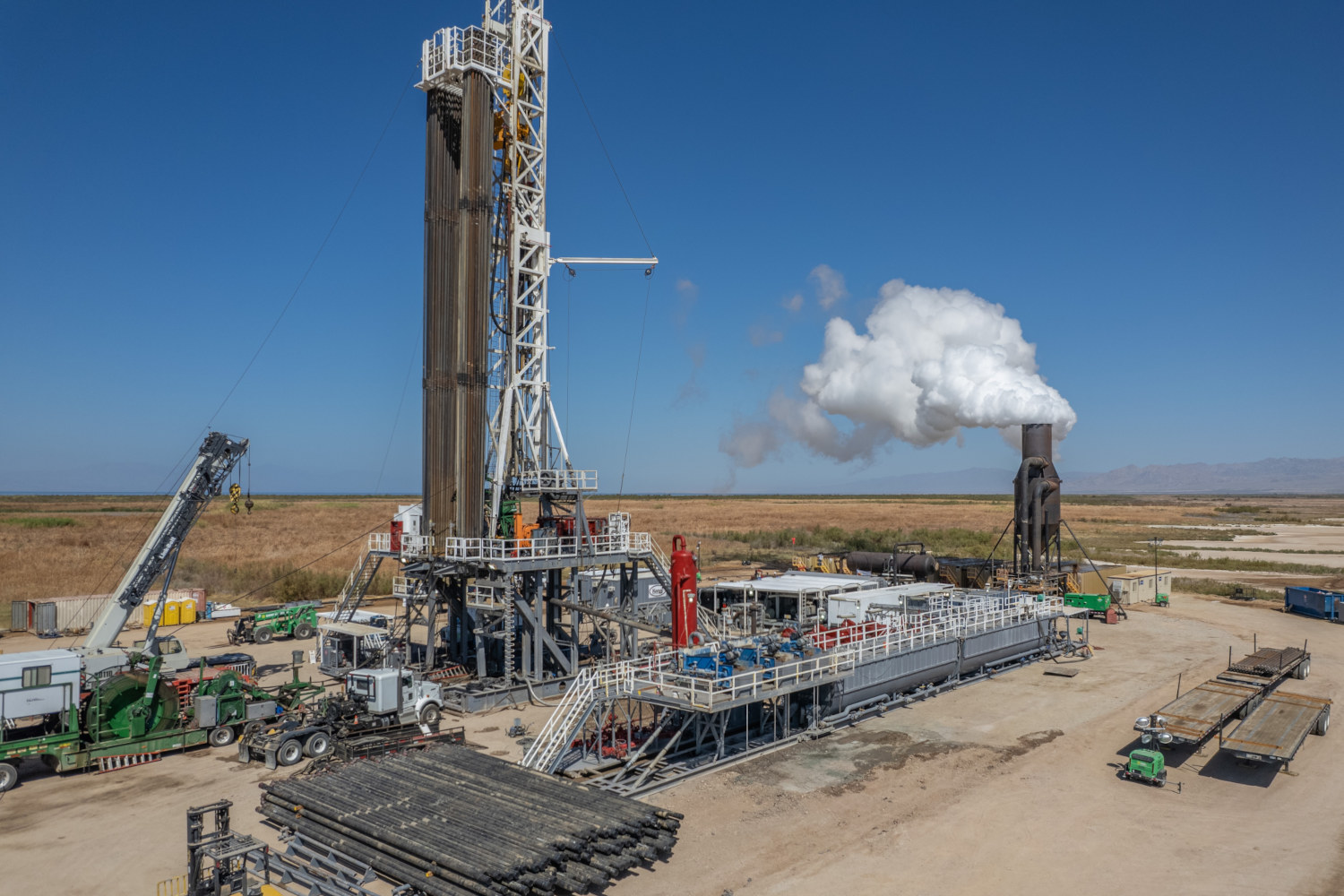 Other players are vying for the Salton Sea lithium, too. Near the proposed CTR site, a subsidiary of Warren Buffett’s Berkshire Hathaway Energy, which already owns most of the geothermal plants in the area, has three geothermal projects in the works, although the company paused those in February 2025 to address permitting delays and infrastructure challenges. BHE is also planning to recover lithium from the region. Nearby, Carlsbad-based EnergySource Minerals plans to have its own facility, and the company was set to receive support from the Department of Energy through a conditional loan announced before President Donald Trump returned to the White House (the company did not respond to requests for an update on the loan’s status). Last year, the company said it aimed for lithium production by the end of 2026.