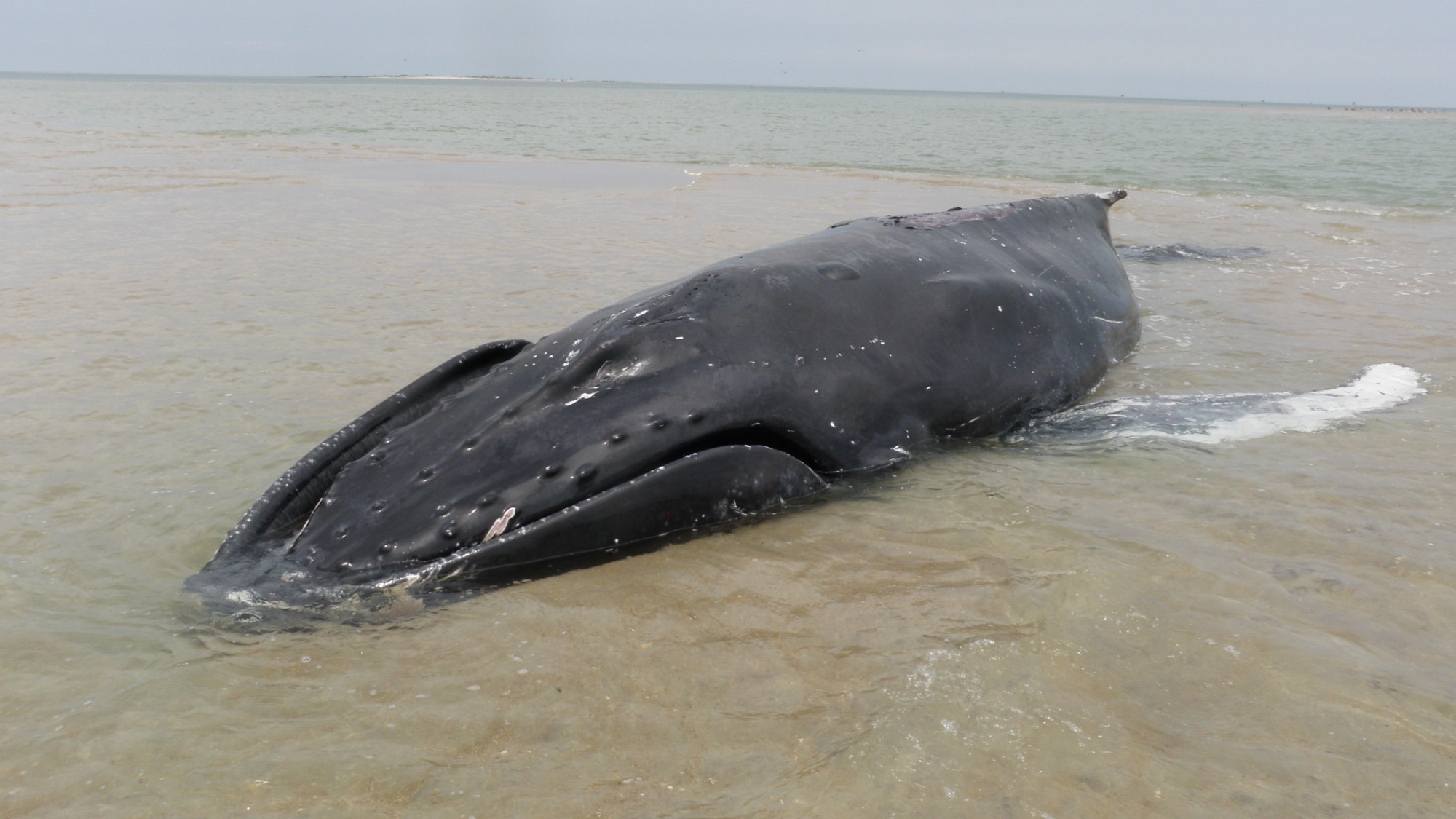 Beached whales rarely survive their encounter with land. Whales are so heavy that without the support of the sea, they go into shock and slowly suffocate under the weight of their own bodies. It can take days for these giants to die.