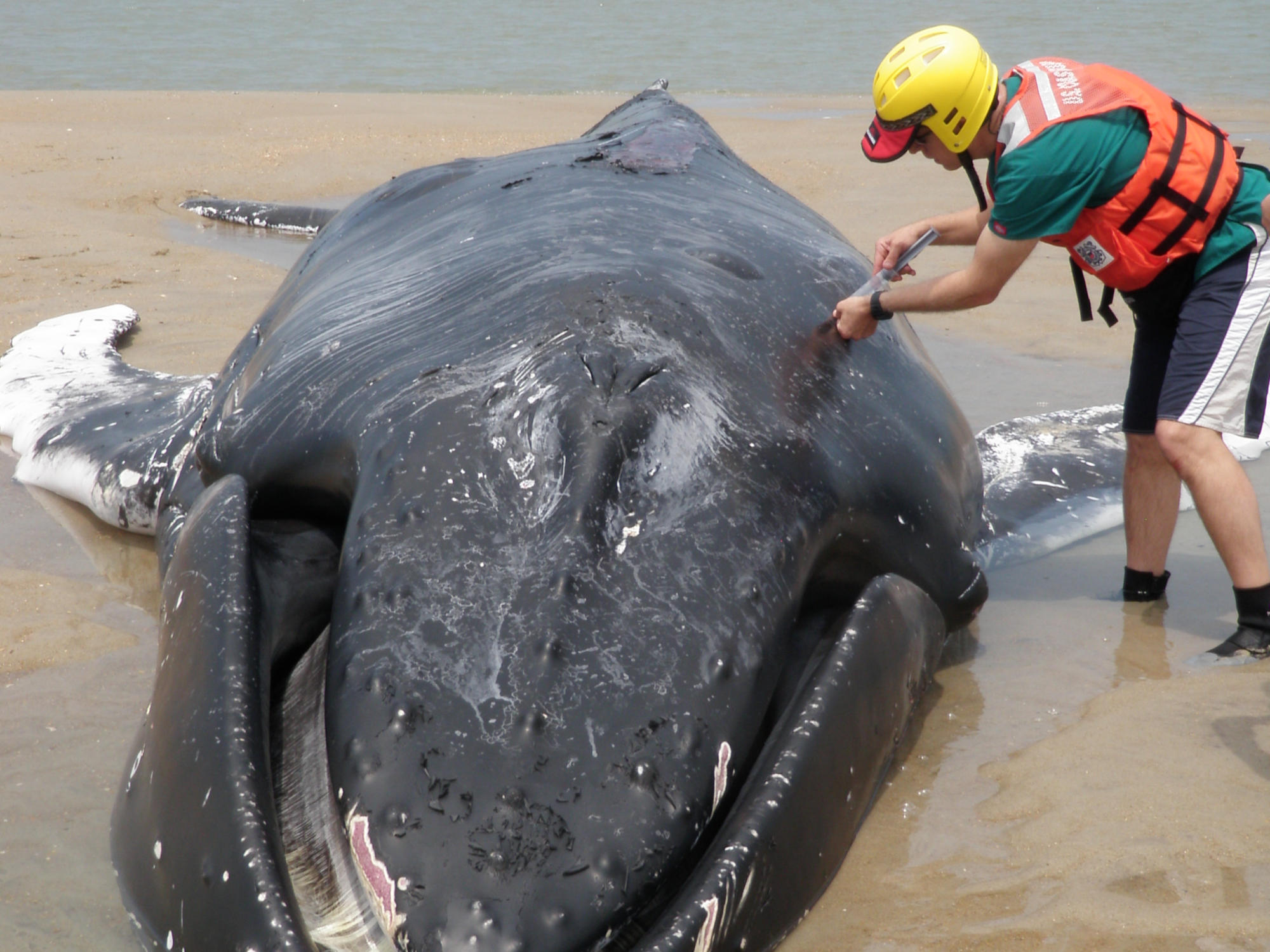 Four living, large whales — three humpbacks and a minke — happened to land along North Carolina’s coast between 2010 and 2013. Harms was called out to tend to each of these animals, and the results were immediate. The first humpback Harms had exsanguinated had taken an hour to die. His second case, a 29-foot humpback whale, passed within seven minutes of the injection.